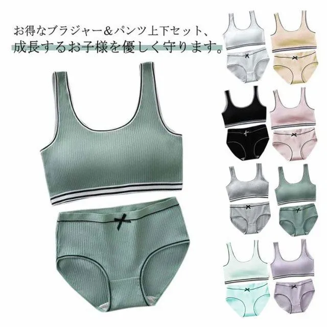 お得なブラジャー&パンツ上下セット、成長するお子様を優しく守ります。