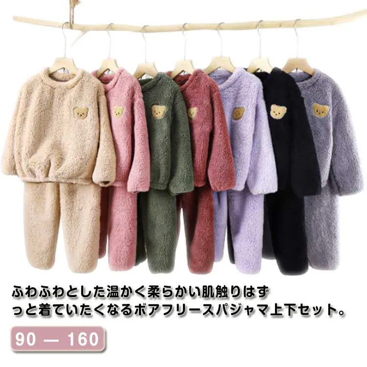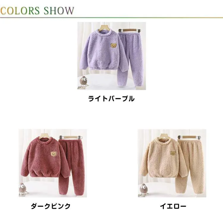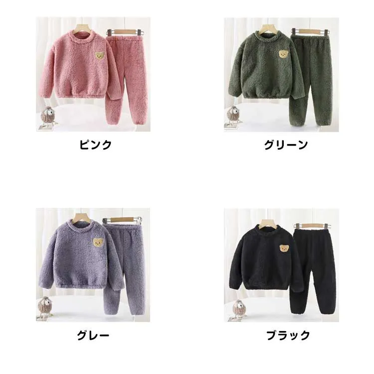 パジャマ キッズ 冬 男の子 女の子 上下セット スウェット モコモコ 子供 長袖 ボア ルームウェア 部屋着 寝巻き ふわふわ もこもこ 厚手 あったか 暖かい 防寒 おしゃれ かわいい 子ども #dongdong12732