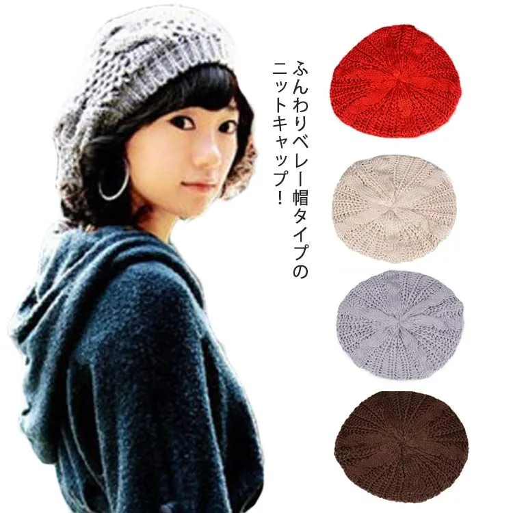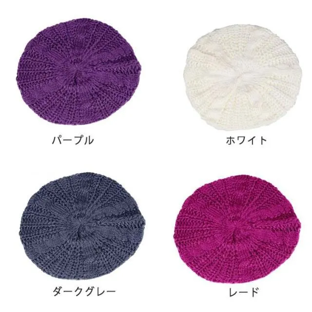 送料無料 レディース 帽子 ニットベレー帽 ニット帽 ベレー帽 ゆったり 秋 冬 春 ふわふわ 毛糸 防寒 暖か ざっくり 編み シンプル 無地 カジュアル ニットキャップ ケーブル編み 帽子 おしゃ#chi837