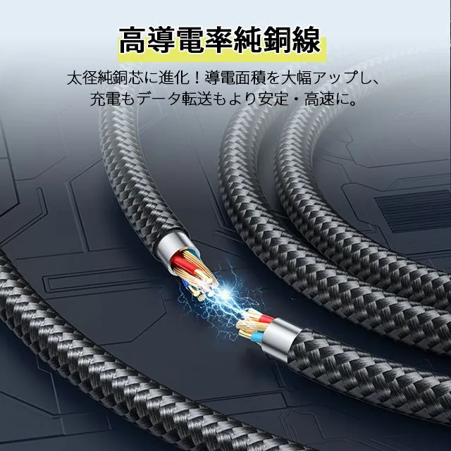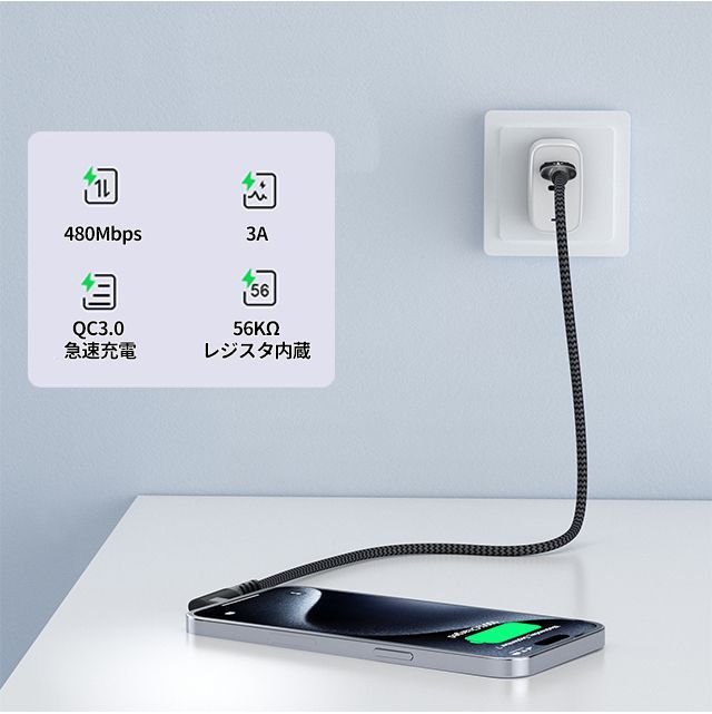 【Type- C】端子搭載のスマホ・タブレット パソコン(PCへの充電不可、データ転送のみ) ※USB-C搭載のiPad/iPhoneに対応可能。 規格:USB 2.0 急速充電・Max 3A充電対応 ※理論値Max 3Aまで対応します。(電流値は接続する機器の性能に依存します) 長さ約: 1.0Mと2.0M選択可 カラー:ブラック・グレー 過電流防止のため、56KΩの抵抗器を内蔵しております。