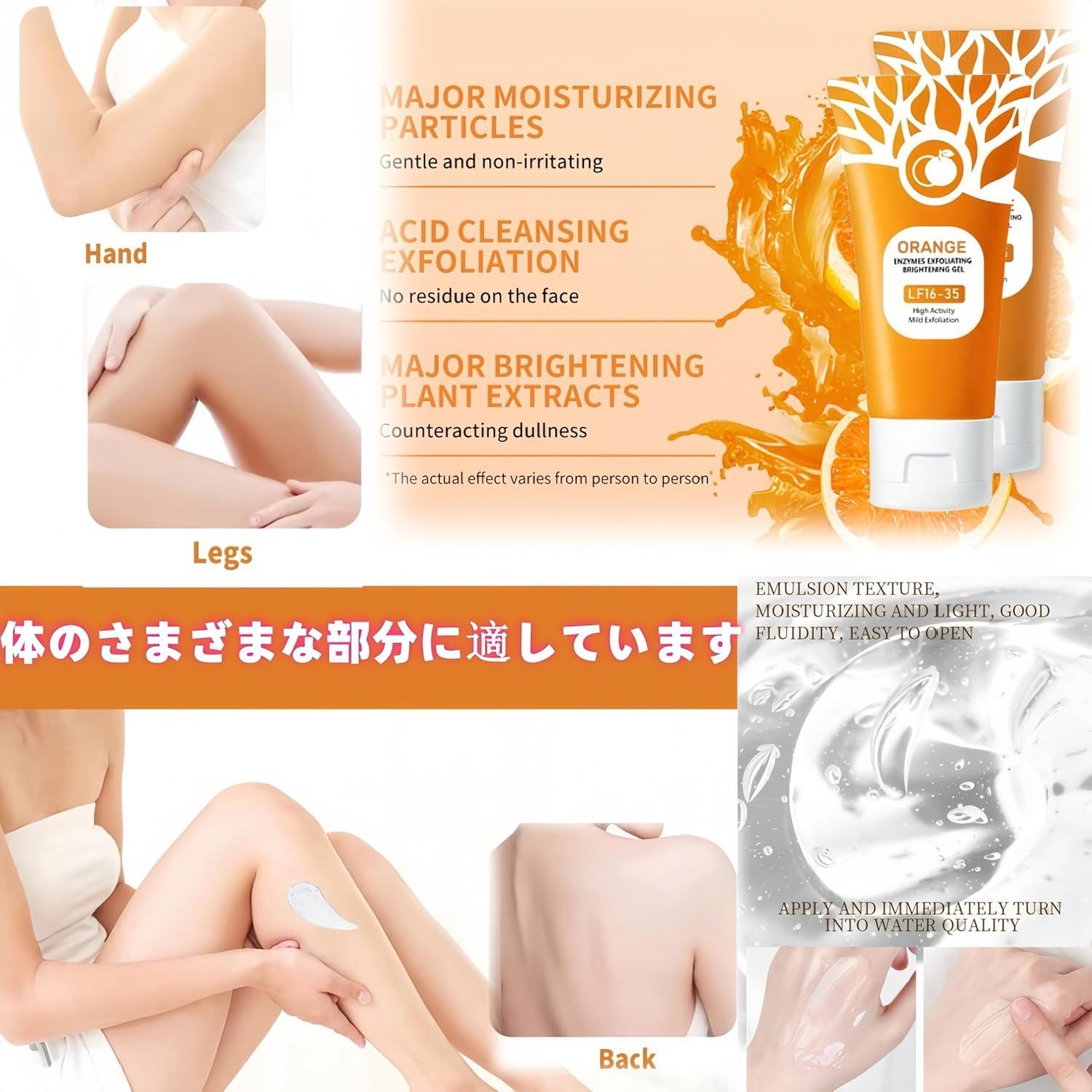Orange Exfoliating Gel 酵素角質除去ブライトニングジェル、オレンジ酵素角質ケアブライトニングジェル 除去ピーリングジェル ジェルのテクスチャー 角質を除去 b-323