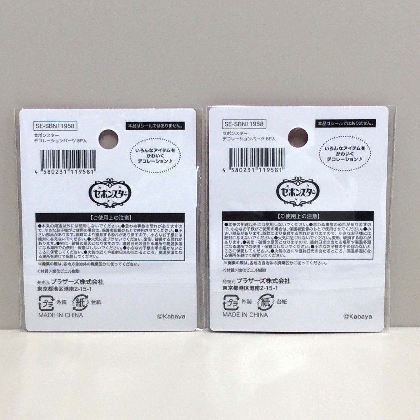【商品詳細】 著 作 :カバヤ食品 発売元 :ブラザーズ 商品名 :セボンスター デコレーションパーツ 2点セット サイズ :約W10~23mm×H10~25mm×D5mm 素材 :塩化ビニル樹脂