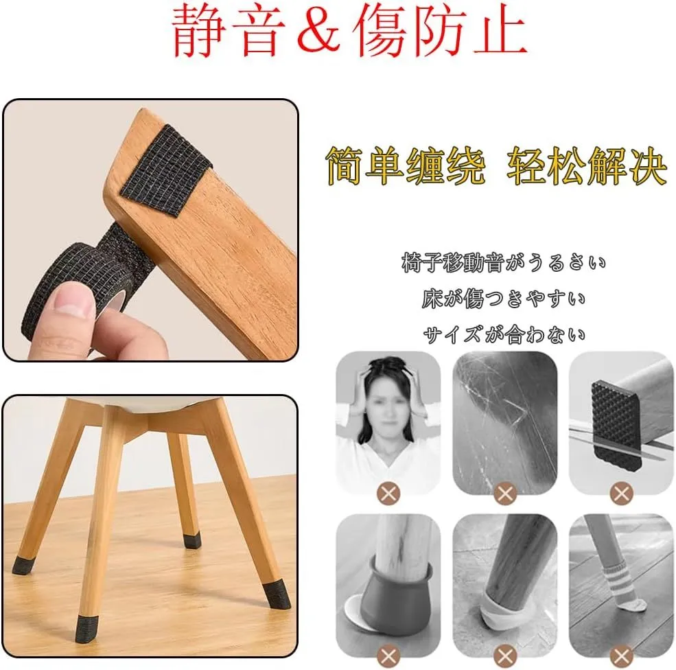 【簡単取り付けで床を保護】イス脚カバーは粘着剤不要で簡単に装着でき、使い終わった後も床をきれいなまま保てます。椅子やテーブル、スツールなど家具の脚に巻くだけで床の傷防止ができます