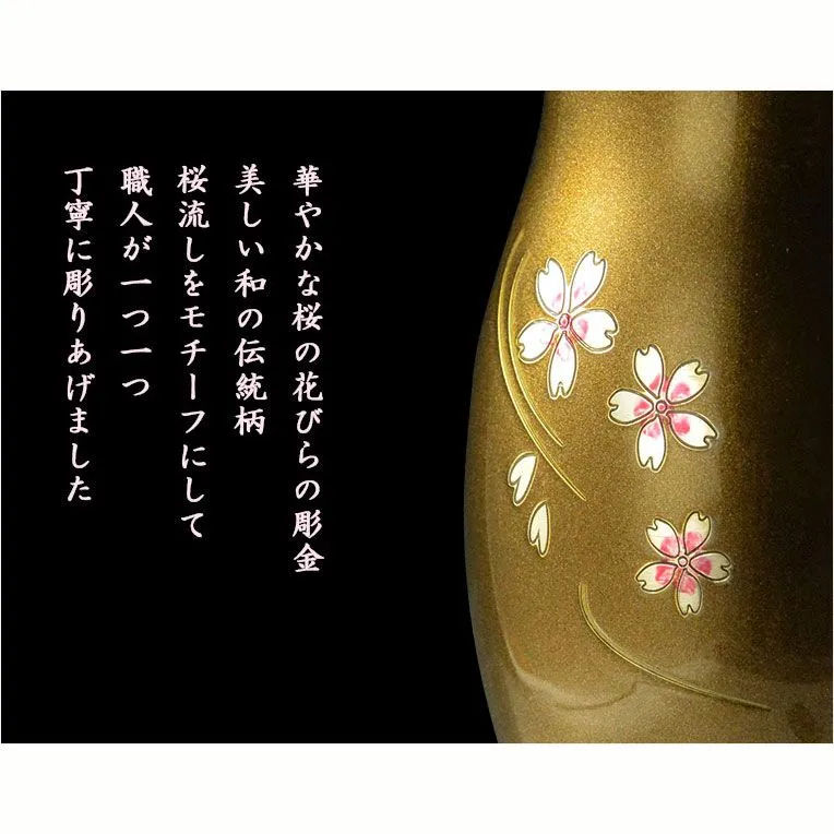 仏具【淵金の煌めきと桜彫金 6具足セット:真桜(まお) パール調ブラウン 3.0寸】