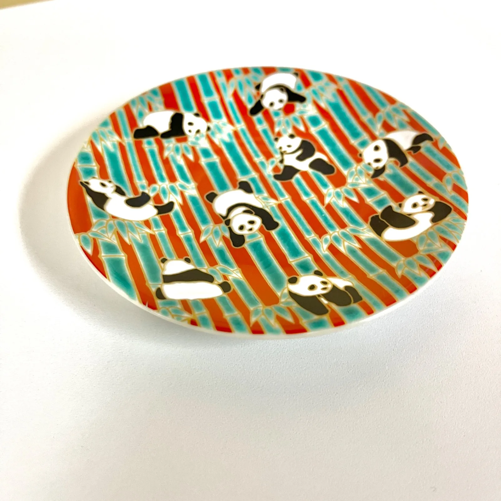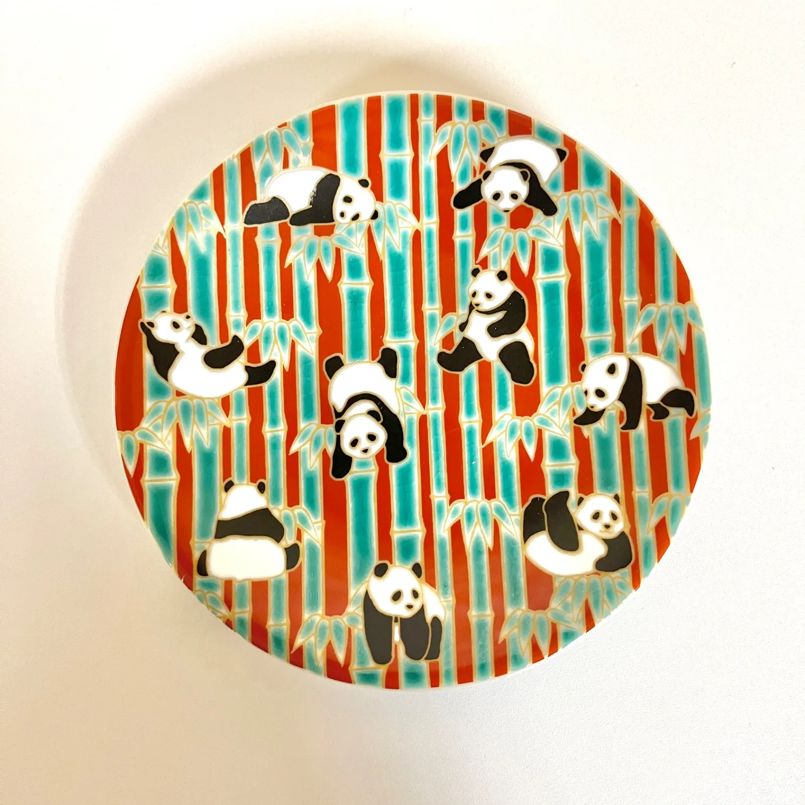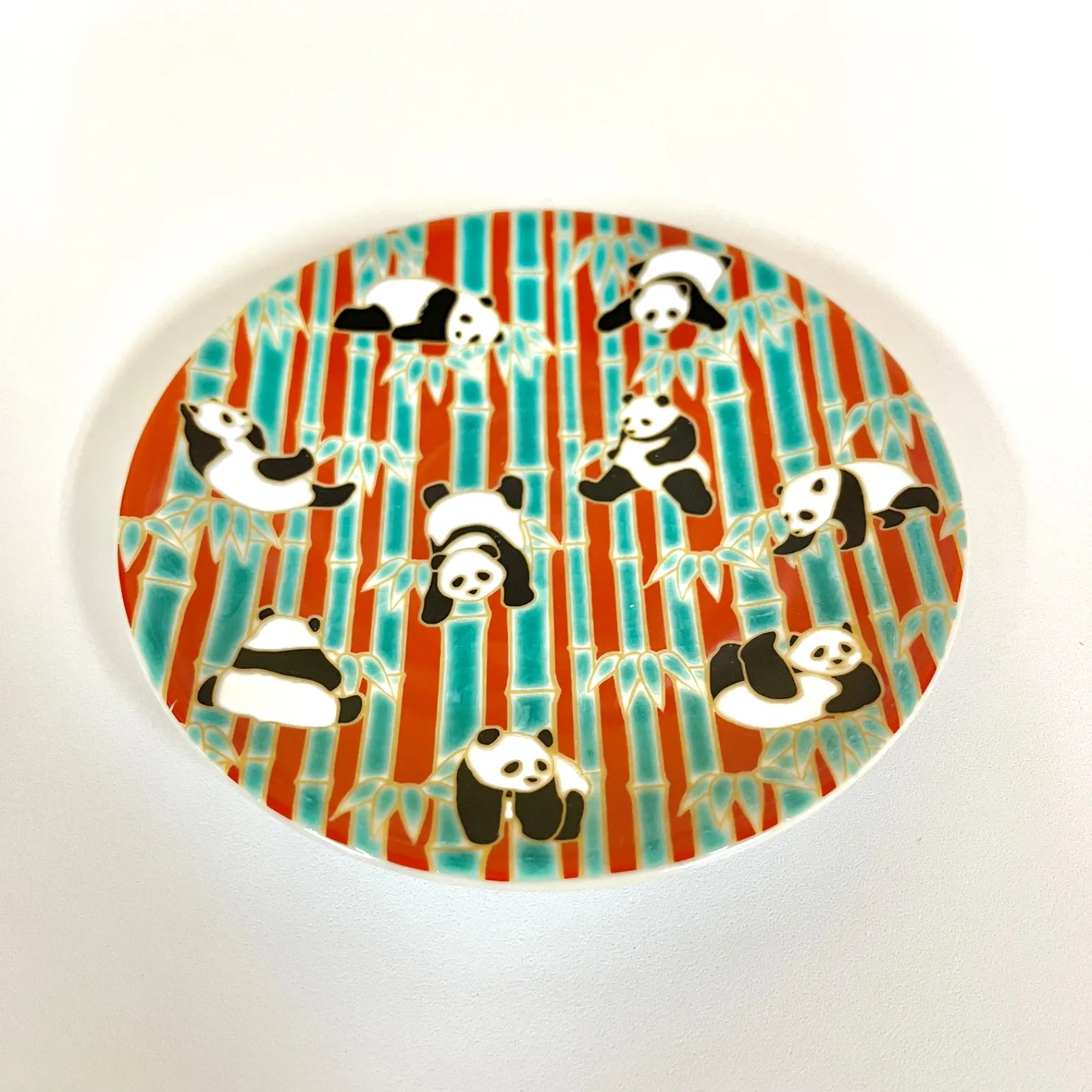 六つの瓢箪は「六瓢(むびょう)」とも呼ばれ、無病息災を願う吉祥柄。梅は寒さの中で凛と咲くことから、気品や強さを象徴する花として親しまれてきました。そこに遊び心あるパンダの絵柄が加わり、上品さの中にもほっと和む可愛らしさを感じられる一組です。
