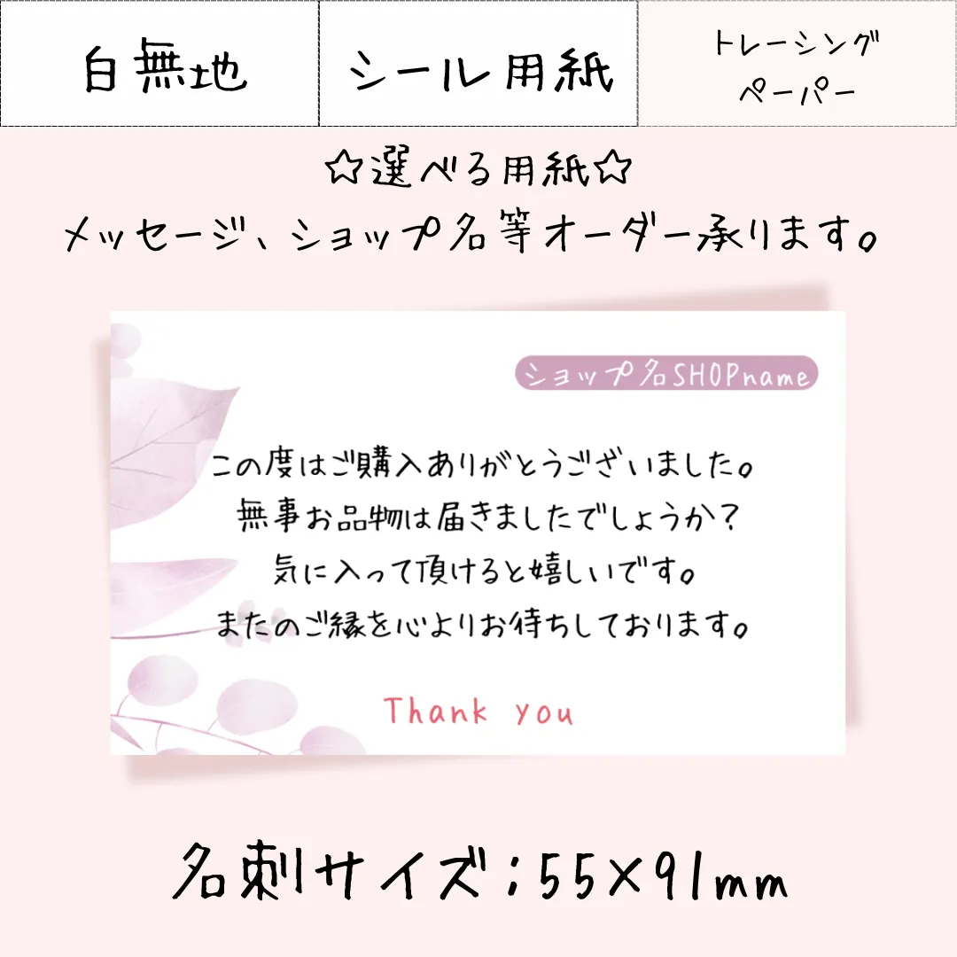 JP004-1【30枚~】選べる用紙 名刺サイズ サンキューカード メッセージカード アクセサリー台紙