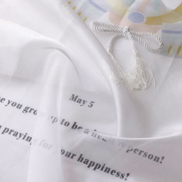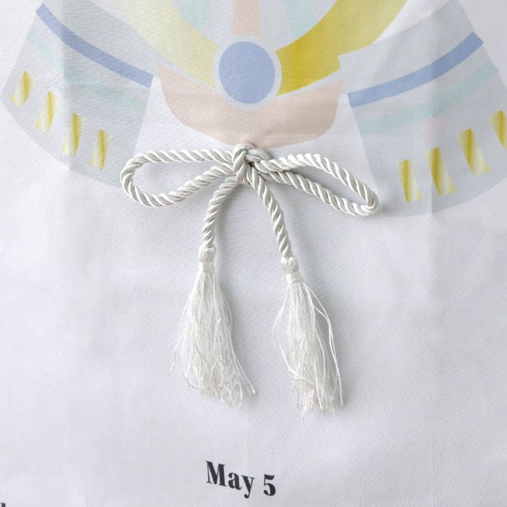 ●ロゴイラスト入りの布地に、キラッと光沢のあるベールが付いた豪華なタペストリー。