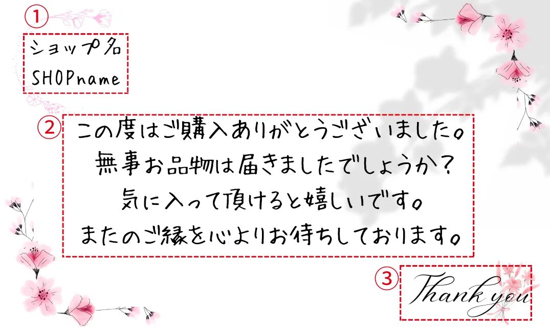 【メッセージ等のオーダー】 画像3枚目をご参考にしてください。 ①ショップ名 ②メインメッセージ ③サブメッセージ ①と③の配置交換可能です。 メッセージやショップ名なしの作成も可能です。 ☆オーダーいただいたデザインは1年間保存しております。 1年以内にリピートいただいた場合お値引きさせていただきます。
