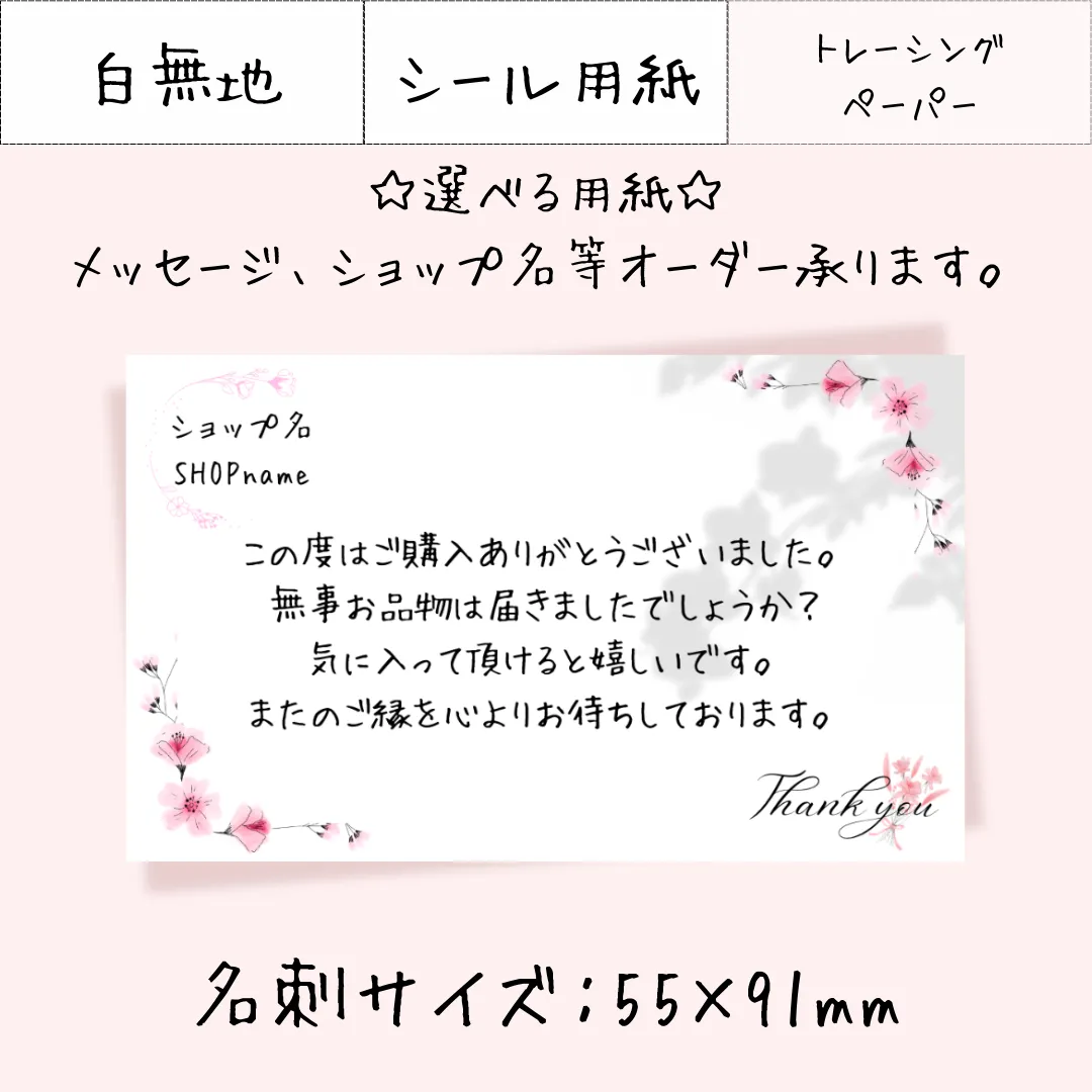 JP005-1【30枚~】選べる用紙 名刺サイズ サンキューカード メッセージカード アクセサリー台紙