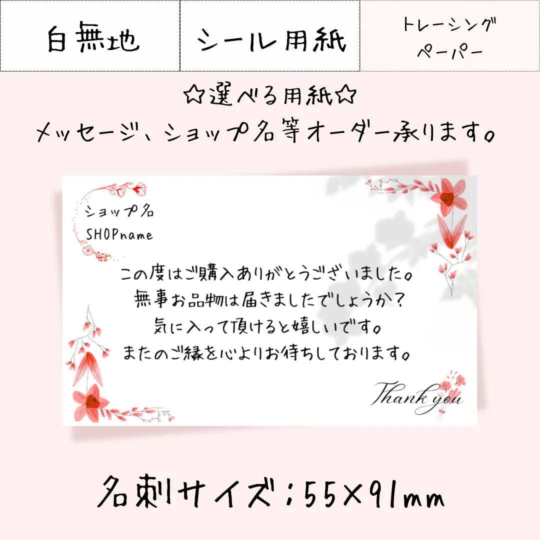 JP005-2【30枚~】選べる用紙 名刺サイズ サンキューカード メッセージカード アクセサリー台紙