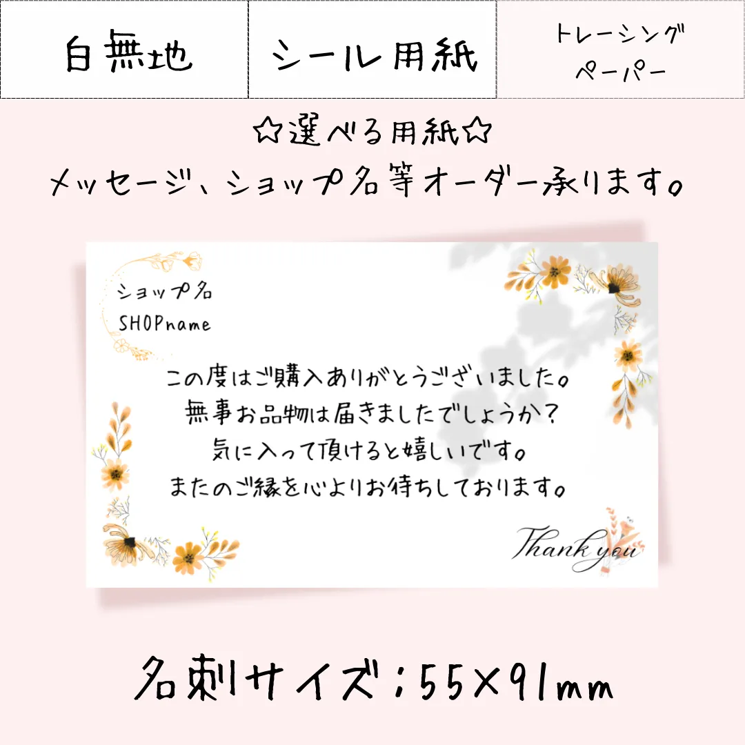 JP005-4【30枚~】選べる用紙 名刺サイズ サンキューカード メッセージカード アクセサリー台紙