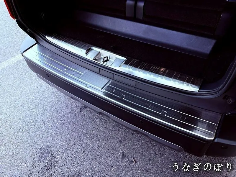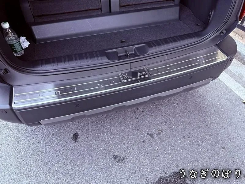 24款トヨタ プラド専用、外後ガード(バックドアシルガード)のテールゲート装飾用ステンレスパネルです。高品質ステンレスを使用し、外観にアクセントを加えるだけでなく、ドアのキズや汚れを防止します。デザインはシンプルで、カーボン柄、ブラック、シルバーなどのカラーがあり、選べるバリエーションを提供します。取り付け方法は粘着テープ式で簡単に装着可能です。エクステリアのドレスアップとして、またバックドア周辺の保護に最適なアイテムです。