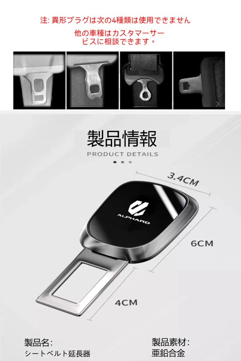 【新品、未使用☘】【新品、未使用☘】】【VELLFIRE専用】ヴェルファイア(VELLFIRE) 1個入 車用シートベルト 車用車内用品 車種共通 合金製 荷物・ペット用 車内小物(車両の互換性)