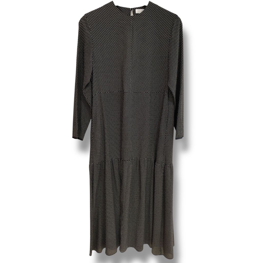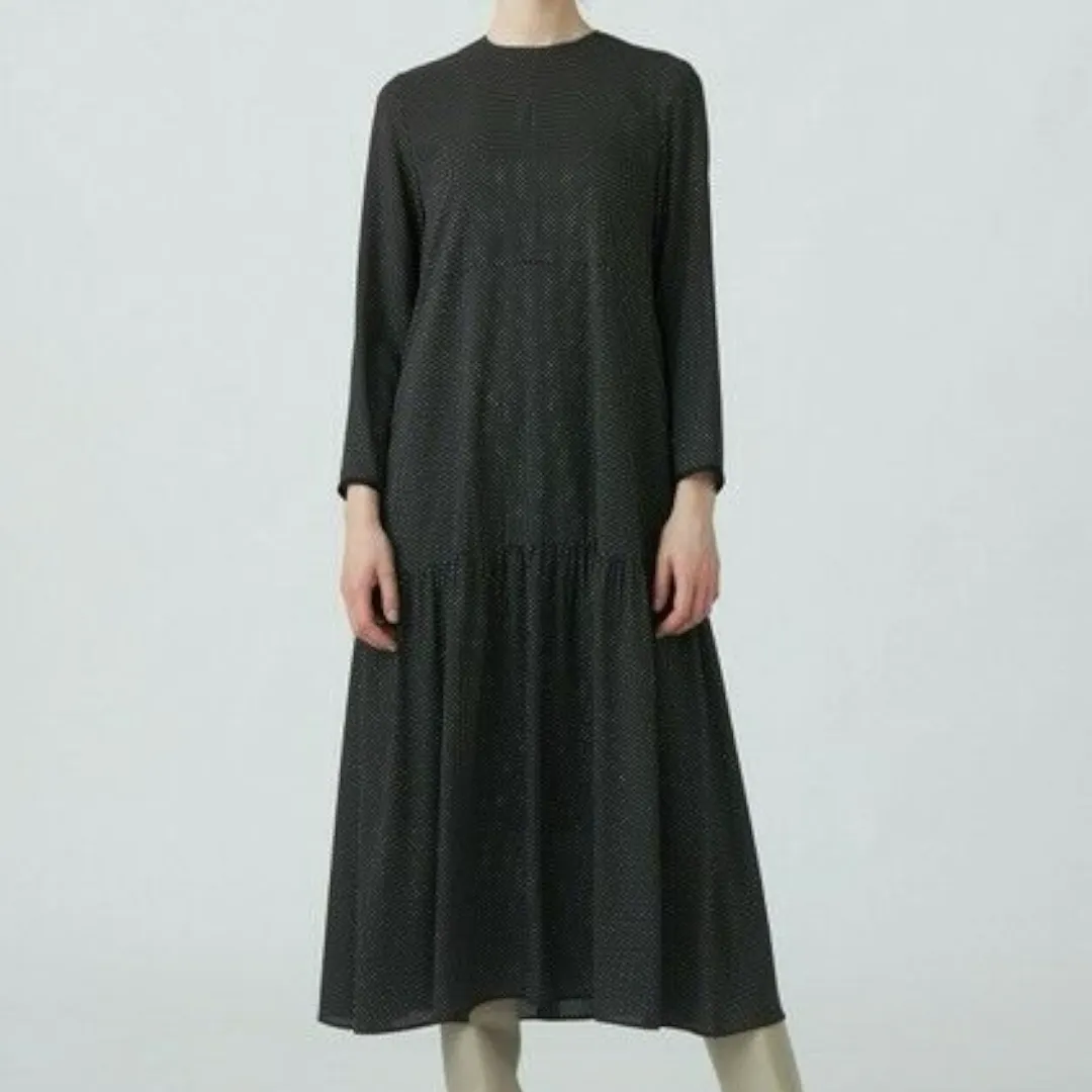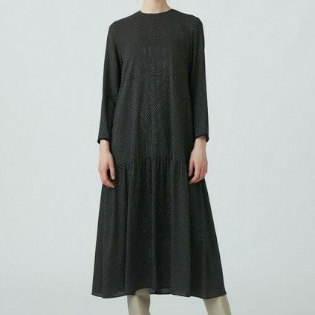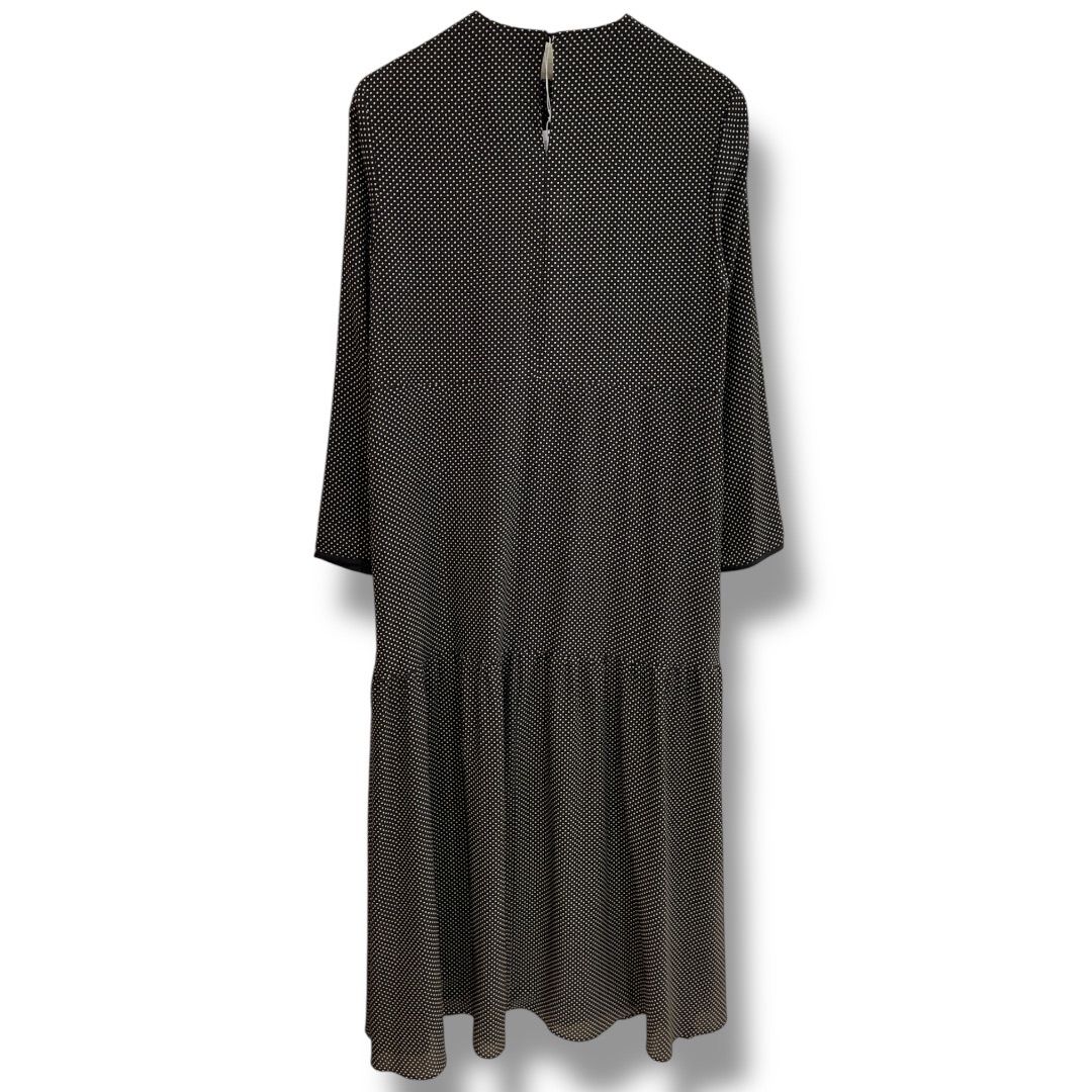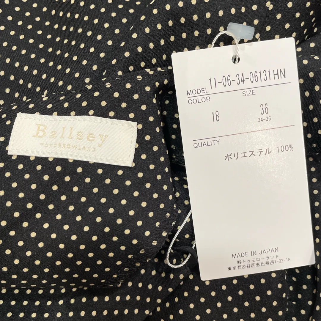 新品 未使用品 タグ付き Ballsey ボールジィ ミニドットプリントフレアギャザーワンピース ロング丈 バックサテン生地 パイピング フォーマル 大人可愛い 日本製 ブラック 36 M レディース 春 ゴーゴー古着セントラルパーク名古屋店No.1908