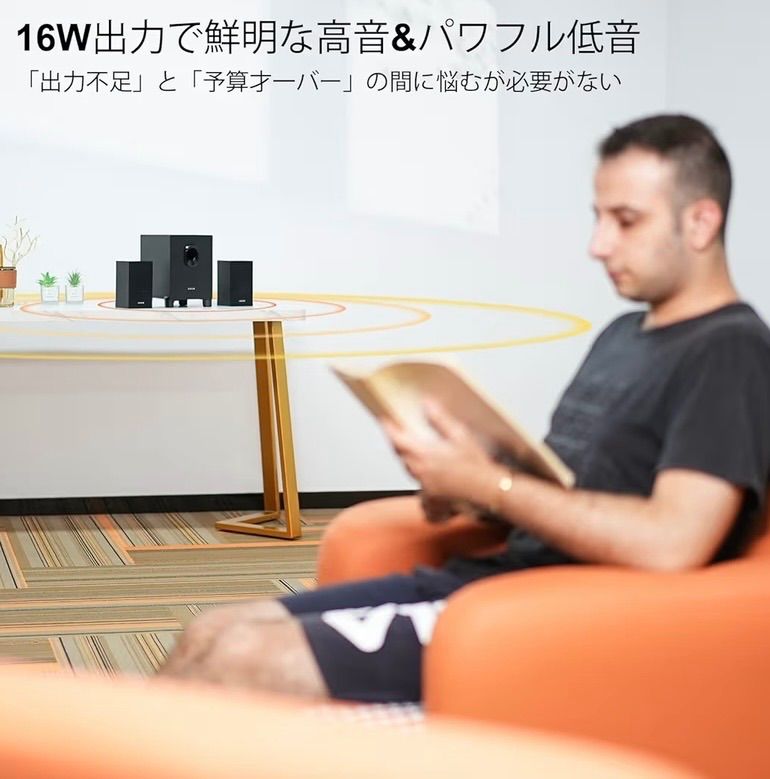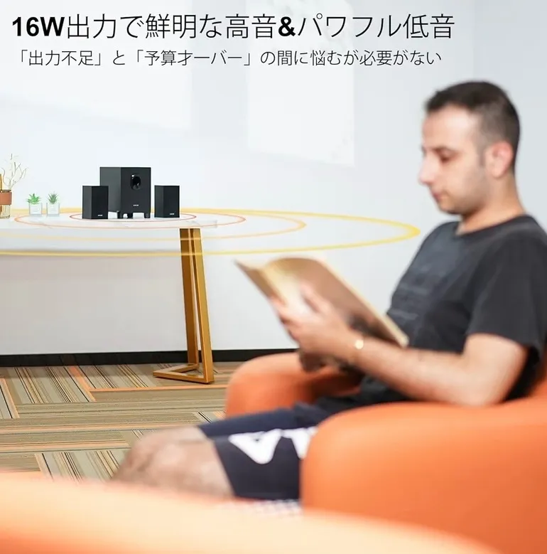 【最大出力16W 臨場感溢れるサウンド】サテライトスピーカーは3w+3w出力で、最大出力10Wのサブウーファーが低音の深みを強化します。2.1 pcスピーカーながら高音は鮮明に、中低音はパワフルに再生するので、音楽や映画、ゲームの没入感を高めることができます。