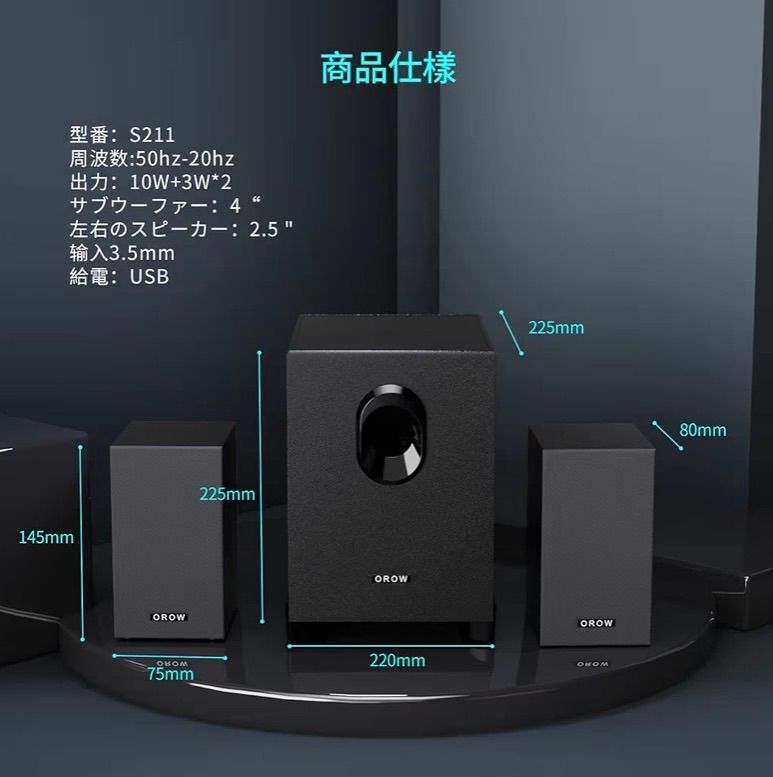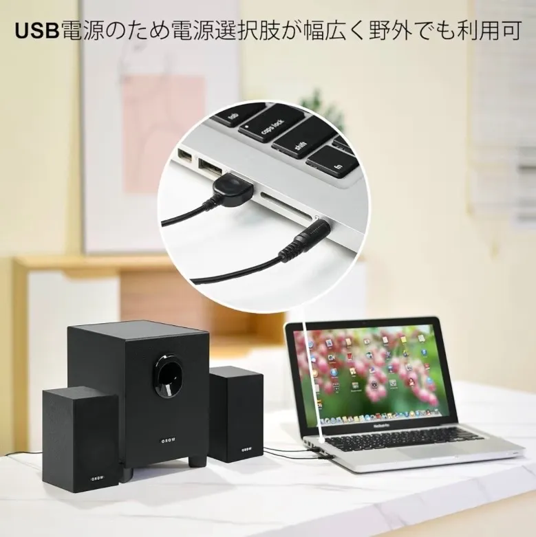 【使い方が簡単&USB接続】この2.1 usb スピーカーはUSB電源式で、PCスピーカー、パソコン、テレビ、ラップトップやモバイル電源(パワーバンク)などのUSBポートに接続して給電可能、音源出力はAUX3.5mmステレオミニジャックのあるデバイスの音声端子につなぐと音楽を楽しめます。ボリュームコントロールを回して、適当な音量を調節できます。 ※念入りに検品していますが、見逃しがある場合 がございます。受取評価後のクレームに関しては対応できかねますので、何かあれば評価前にご連絡ください。
