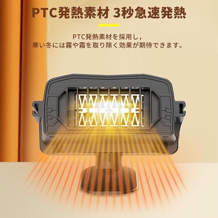 「PTC発熱素材&3秒急速発熱」車用ファンヒーターは定温発熱に優れたPTC発熱素材を採用しています。