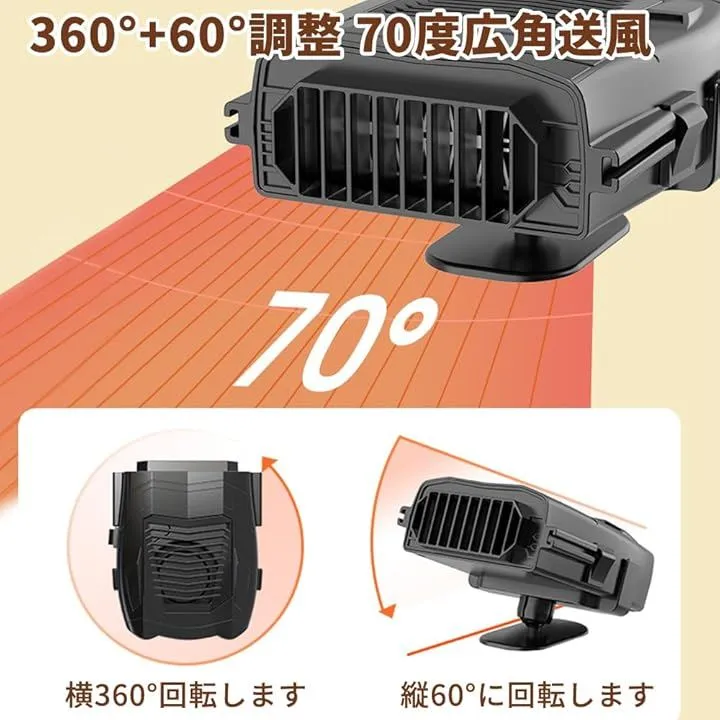 「360°+60°調整&70度広角送風」ヒーターの角度は必要に応じて調整できます。