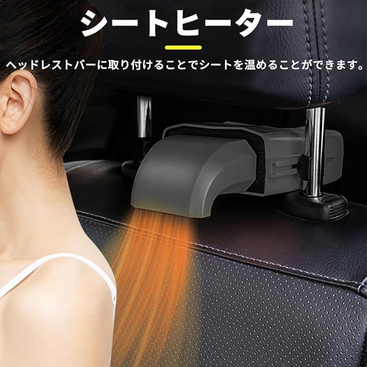 メーター台に取り付けることでガラスの曇りを取り、ヘッドレストバーに取り付けることでシートに風を当てることでシートヒーターを実現します。