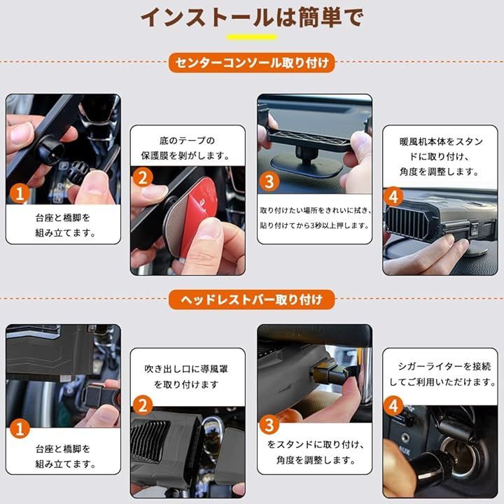 「取り付け簡単」車載ファンヒーター には二つの取り付け方があり、どちらも簡単です。