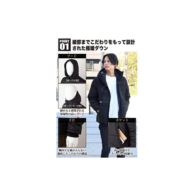 [GRADE] 極暖ダウン ダウンジャケット メンズ 『暖かさを極めたダウンジャケット』 ダウン 防寒 (JP, アルファベット, XL, ブラック) 0