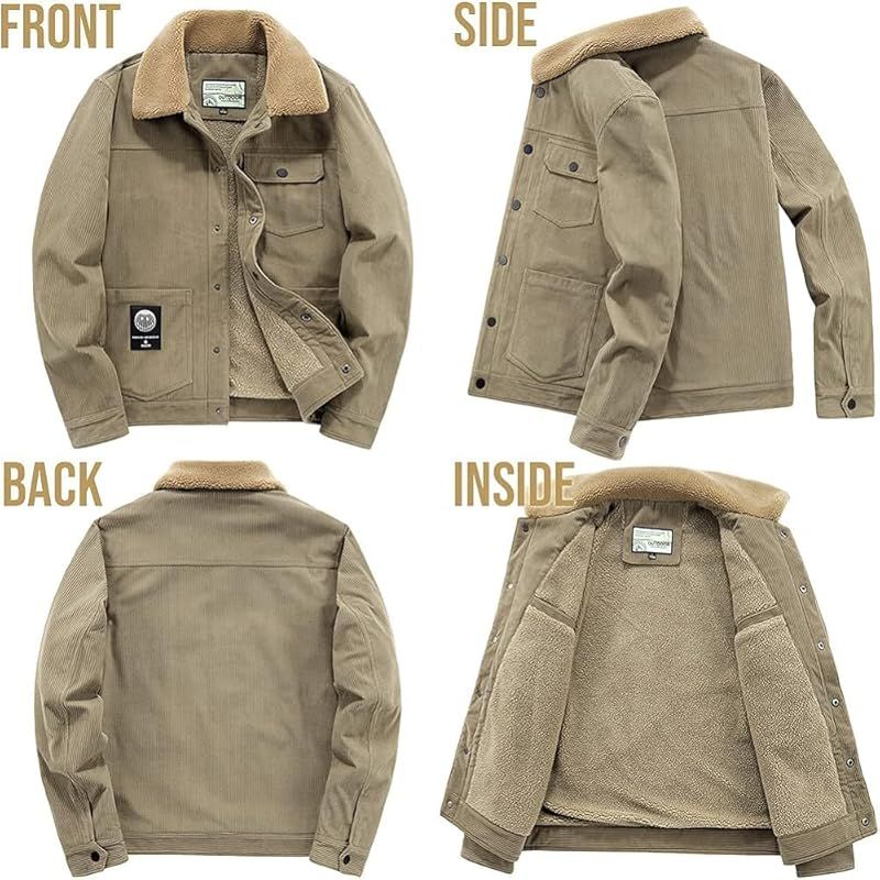 【防寒・防風】表面と裏地はコーデュロイとボアで作られており、優れた防風性、保温性、手触りを備えています。寒さに強く、防風保温に優れ、暖かく着られます。裏起毛で暖かく柔らかい肌触りが特徴のあるジャケットです。