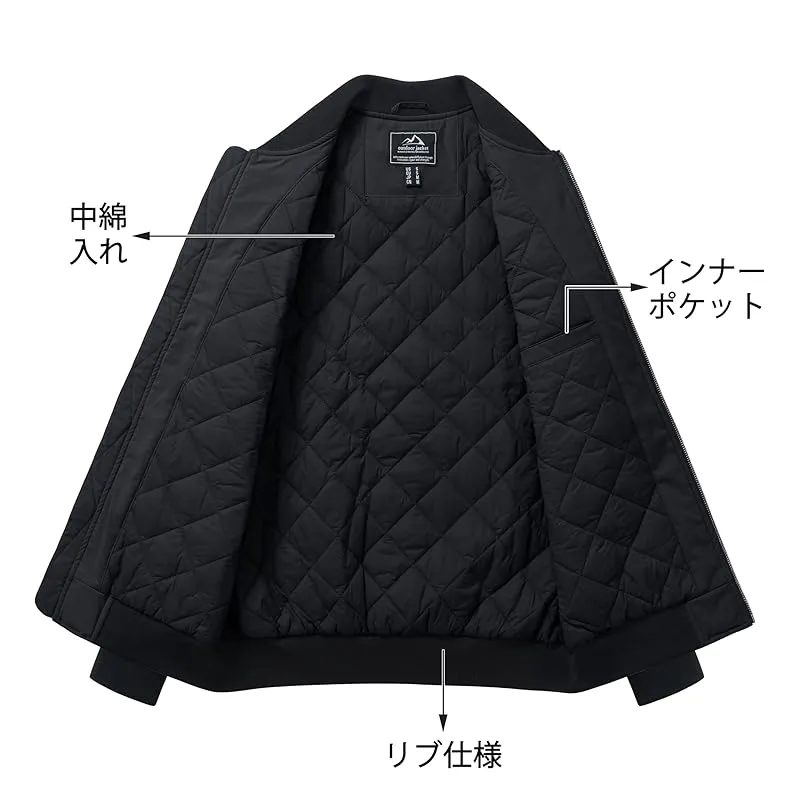 【防風&撥水】このジャケットは防風性と撥水性を備えており、寒さに効果的に耐えることができます。襟、袖口と裾はリブ編み仕様のデザインが、フィットして動きやすい、防風性も高めます。