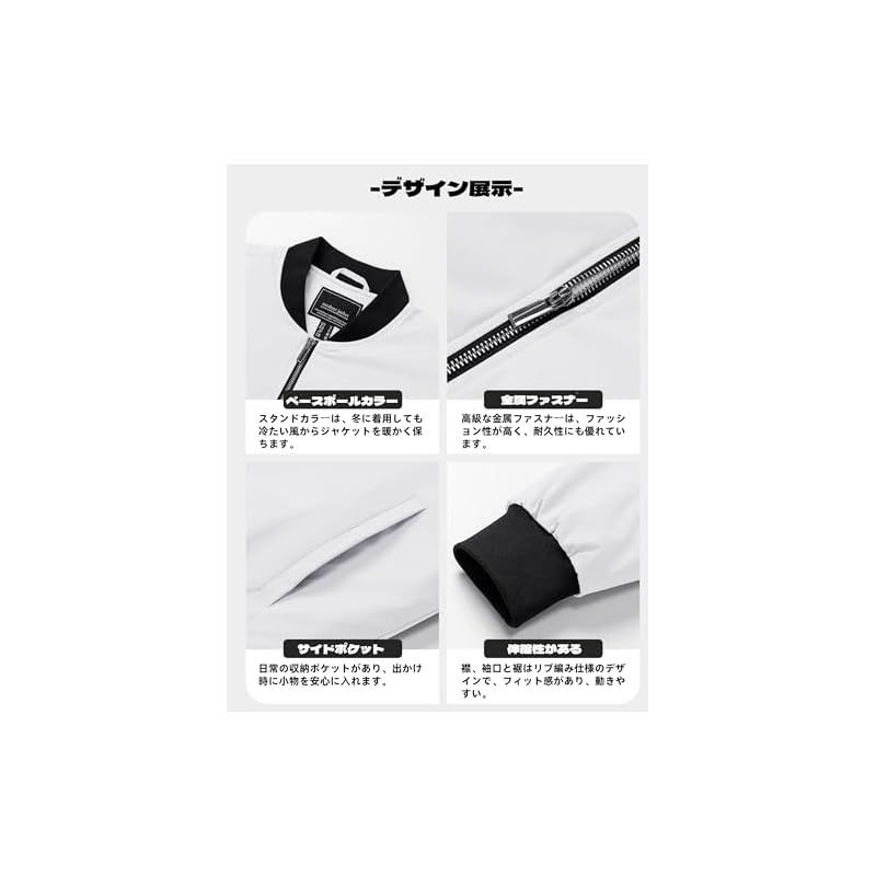 [TACVASEN] メンズ バイク ジャケット 作業用 ジャンパー 上着 スタジャン ポケット付き 防風 撥水 中綿入れ 春コート 仕事 軽量 冬 ウェア ホワイト M 0
