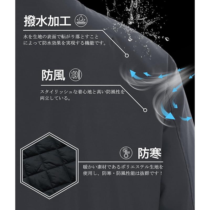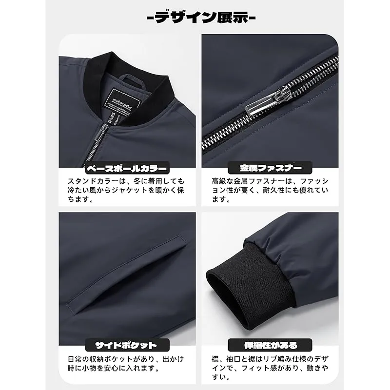 [TACVASEN] ライダースジャケット メンズ 防風 釣りウェア 防寒 スタジャン スケーター 冬 ボンバージャケット キルティング 軽量 コート ダークグレー L 0