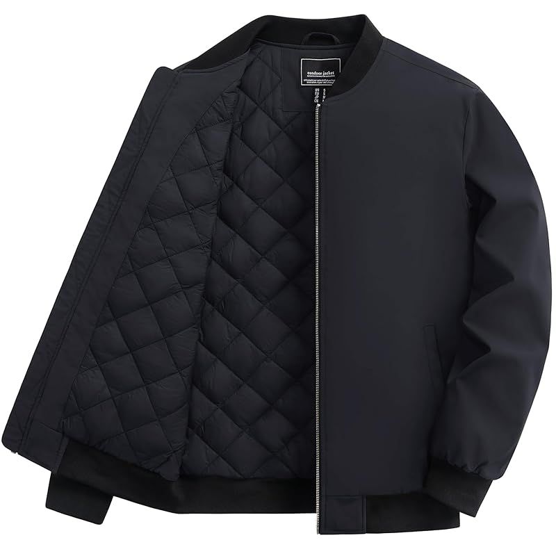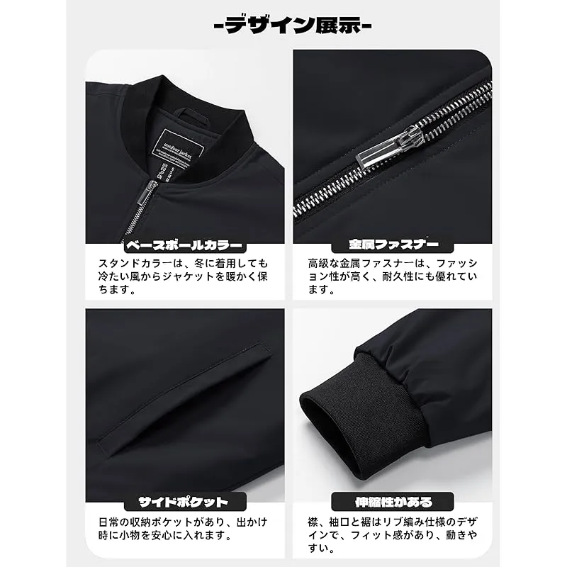 [TACVASEN] ボンバージャケット メンズ 秋冬 ブルゾン 大きいサイズ 野球 防風 ジャンパー バイク ウェア 仕事 ポケット付き 無地 スタジャン ブラック 3XL 0