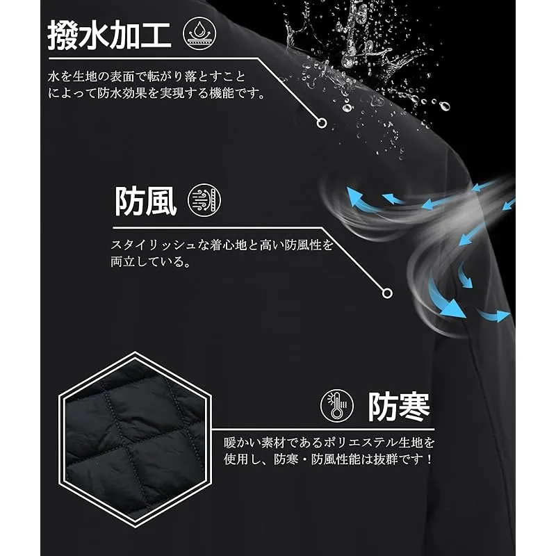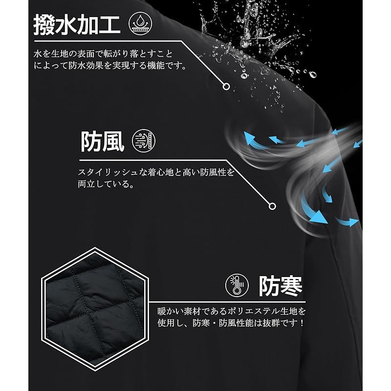 【防風&撥水】このジャケットは防風性と撥水性を備えており、寒さに効果的に耐えることができます。襟、袖口と裾はリブ編み仕様のデザインが、フィットして動きやすい、防風性も高めます。