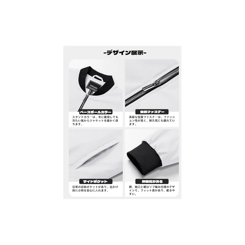 [TACVASEN] メンズ バイク ジャケット 作業用 ジャンパー 上着 スタジャン ポケット付き 防風 撥水 中綿入れ 春コート 仕事 軽量 冬 ウェア ホワイト 4XL 0