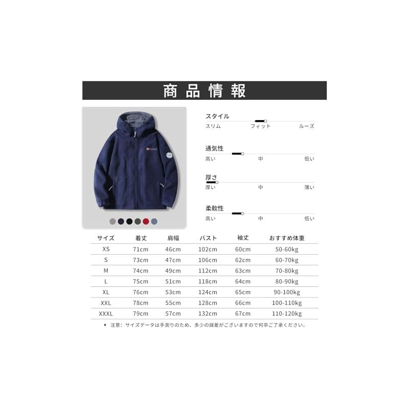 【6色・7サイズ】定番のブラック、ネービー、グレー、ブルー、カーキ、明るいレッドの6色展開。またXSから3XLまでの7サイズ展開、必ずお似合いのサイズをお買い得ができます。シンプルなデザインで保温防寒効果あり、 ジーンズなどと合わせてストリートスタイル!