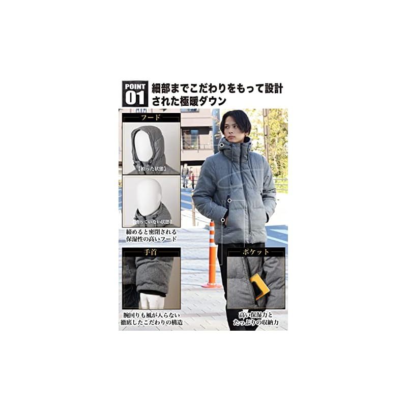 [GRADE] 極暖ダウン ダウンジャケット メンズ 『暖かさを極めたダウンジャケット』 ダウン 防寒 (JP, アルファベット, XL, グレー) 0