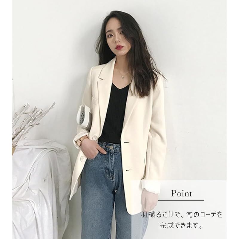 [ASARANS] テーラード ジャケット アウター 長袖 レディース スーツ 上着 通勤 フォーマル カジュアル シンプル 大人 上品 春 秋 (JP, アルファベット, M, オフホワイト) 0