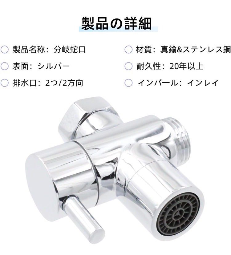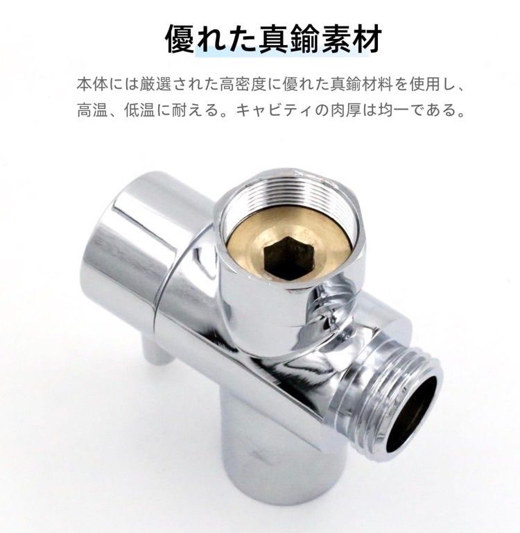 真鍮ダイバータ シャワーヘッド T型アダプター 蛇口 分岐 2方向切替バルブ シャワー 分岐水栓 洗面台 蛇口 エクステンダー 交換部品 調整可能 耐久性 風呂・トイレ用 シャワー水栓パーツ