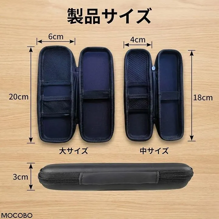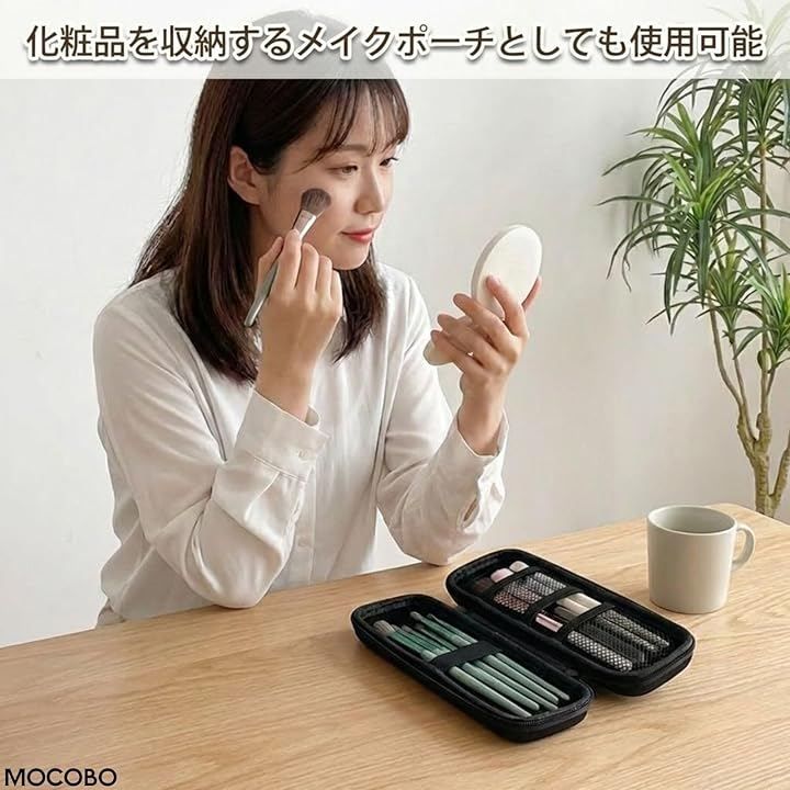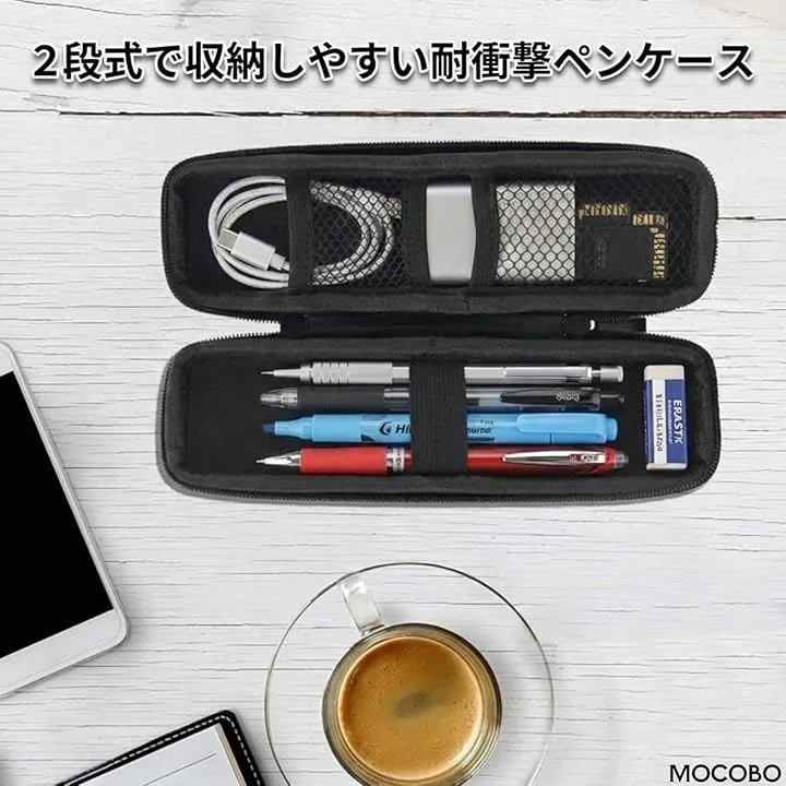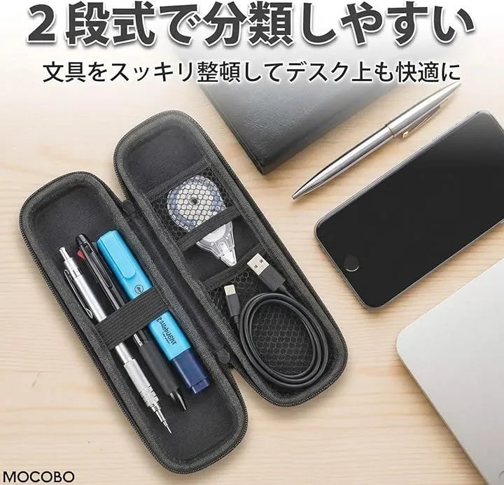 MOCOBO ペンケース 大容量 多機能 筆箱 ブラック 2段式 EVA素材 ハードケース 耐衝撃 軽量 文房具 収納 おしゃれ 学生 社会人 男女兼用 プレゼント 子供用 入学 (黒, 中サイズ)