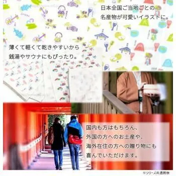 「ご当地つつうらうらてぬぐい」は日本のかわいいをちりばめた、ガーゼとパイルのやさしいてぬぐいです。かさばらないので旅行のおともに◎選んで、集めて、お土産にもぴったり。