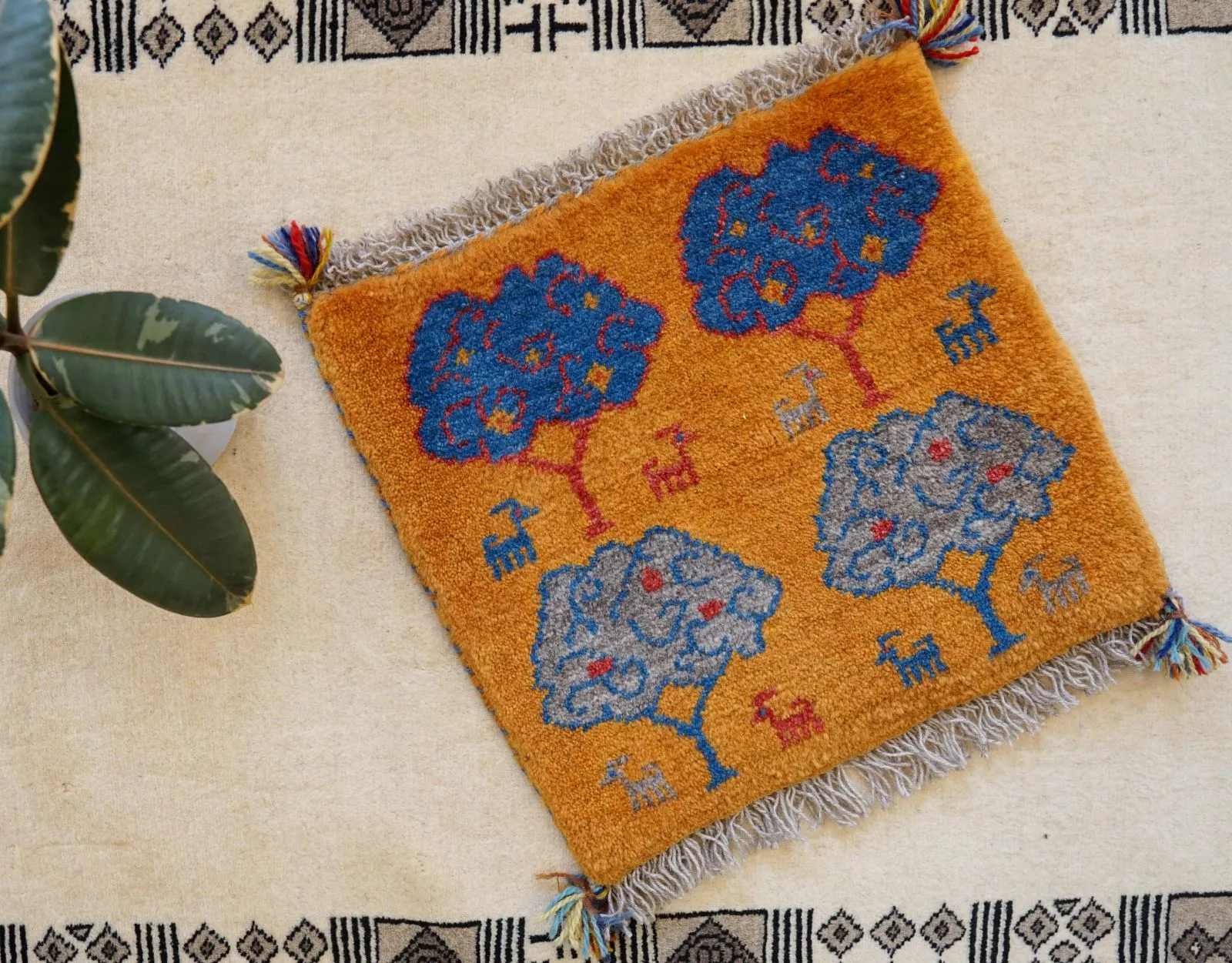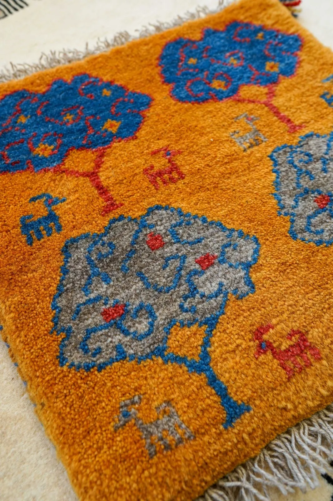 ペルシャ手織りギャッベ アマレ族 40×40cm|ウール100% ミニラグ・チェアマット 生命の木デザイン
