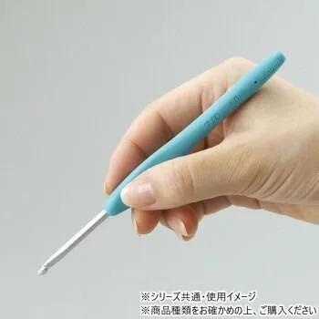 編み物が大好きになる「編みやすい」「持ちやすい」ずっと編んでいたいかぎ針です。しっかり編める針先と、やさしい手ざわりで指にフィットする立体グリップ付きです。初心者さんにも安心です。針先から糸がはずれにくく、目を拾ったり、糸を引き抜きやすい針先形状です。かぎ針の基本動作をかんたんに確実に行える工夫をしています。立体的なカーブで作られたグリップは、自然に指先にフィットします。