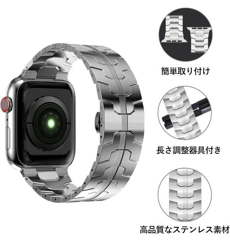 【シルバー,49mm/46mm/45mm/44mm】for Apple Watch バンド ステンレス製 49mm/46mm/45mm/44mm アップルウォッチベルト 対応長さ調整器具付き