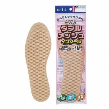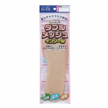 ダブルラッセル構造が適度なクッション性をもたせメッシュ構造ですので通気性に優れています。表地に制菌加工素材「バイオガード」を使用し、繊維上の細菌の増加を抑制します。消臭加工素材「CGX」が不快臭、悪臭を無臭化します。
