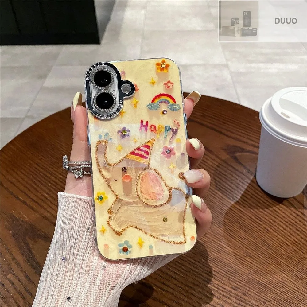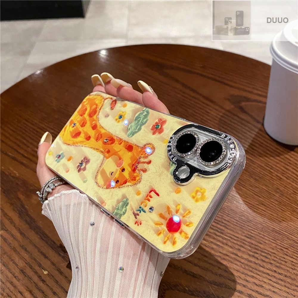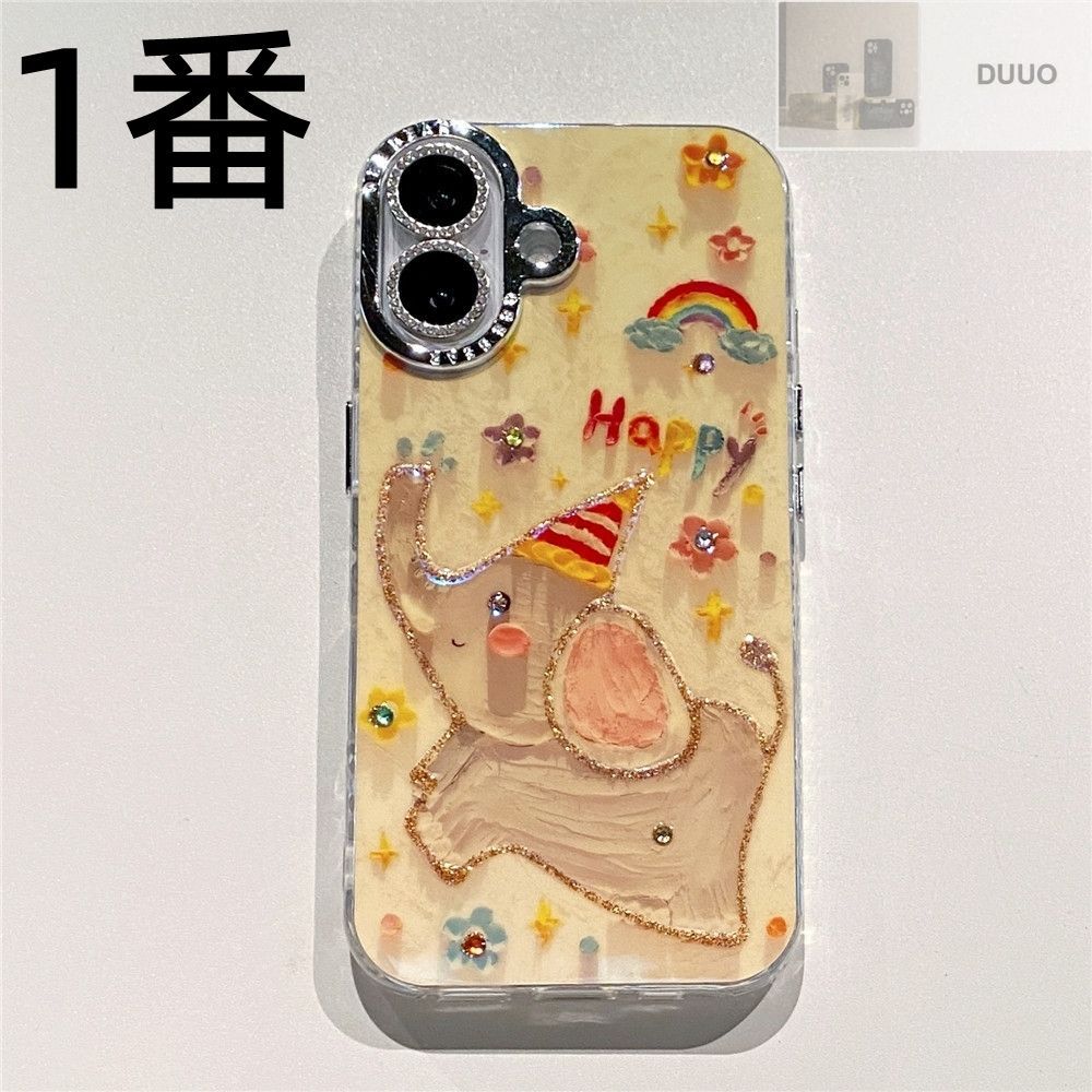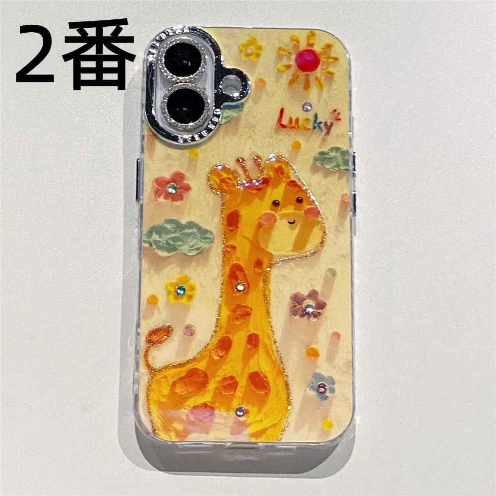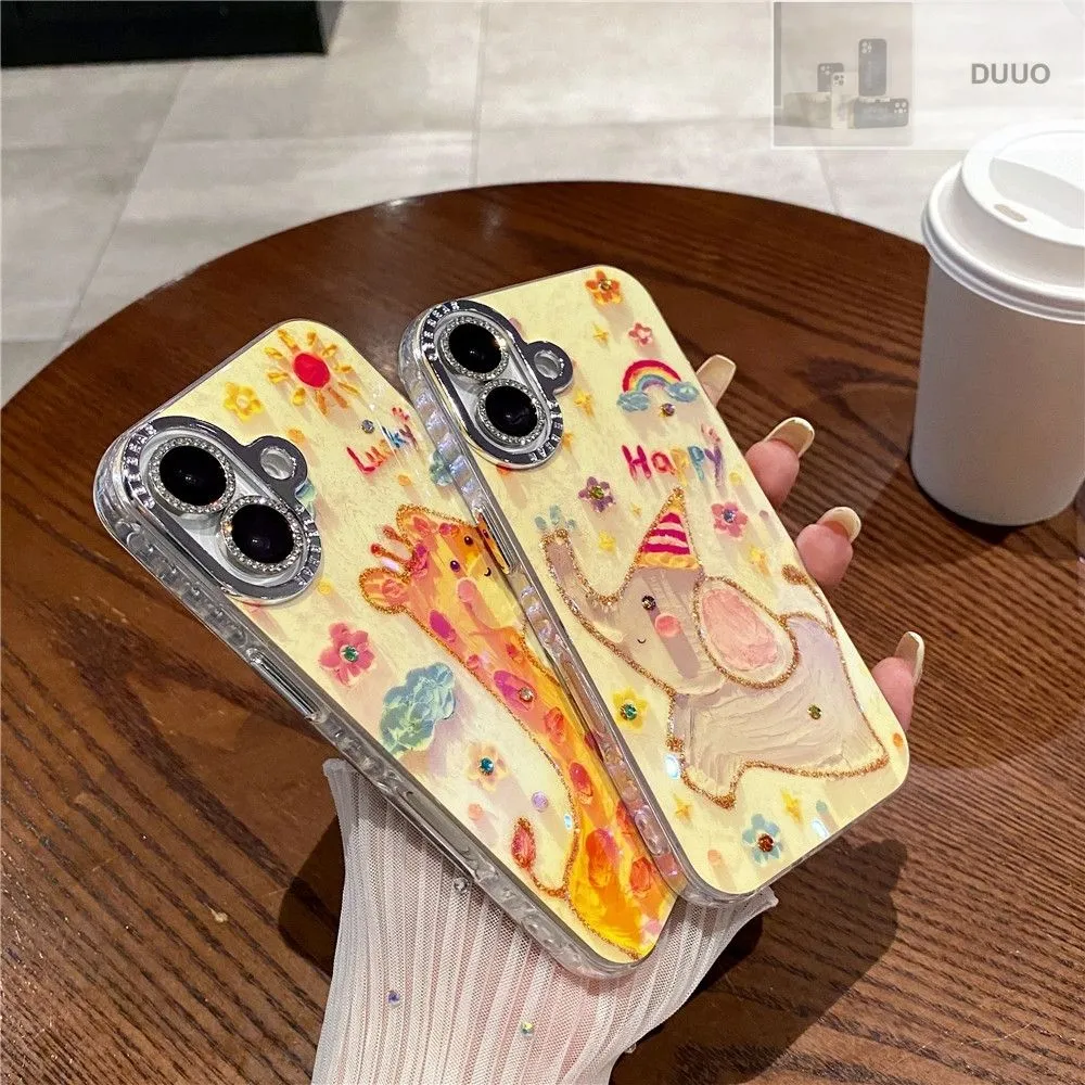 キリン&ゾウの卡通 保護ケース キラキラストーンあしらい 全包み 耐衝撃 ソフトケース iPhone17/17pro/17pro max/16/15/14/13 多機種対応