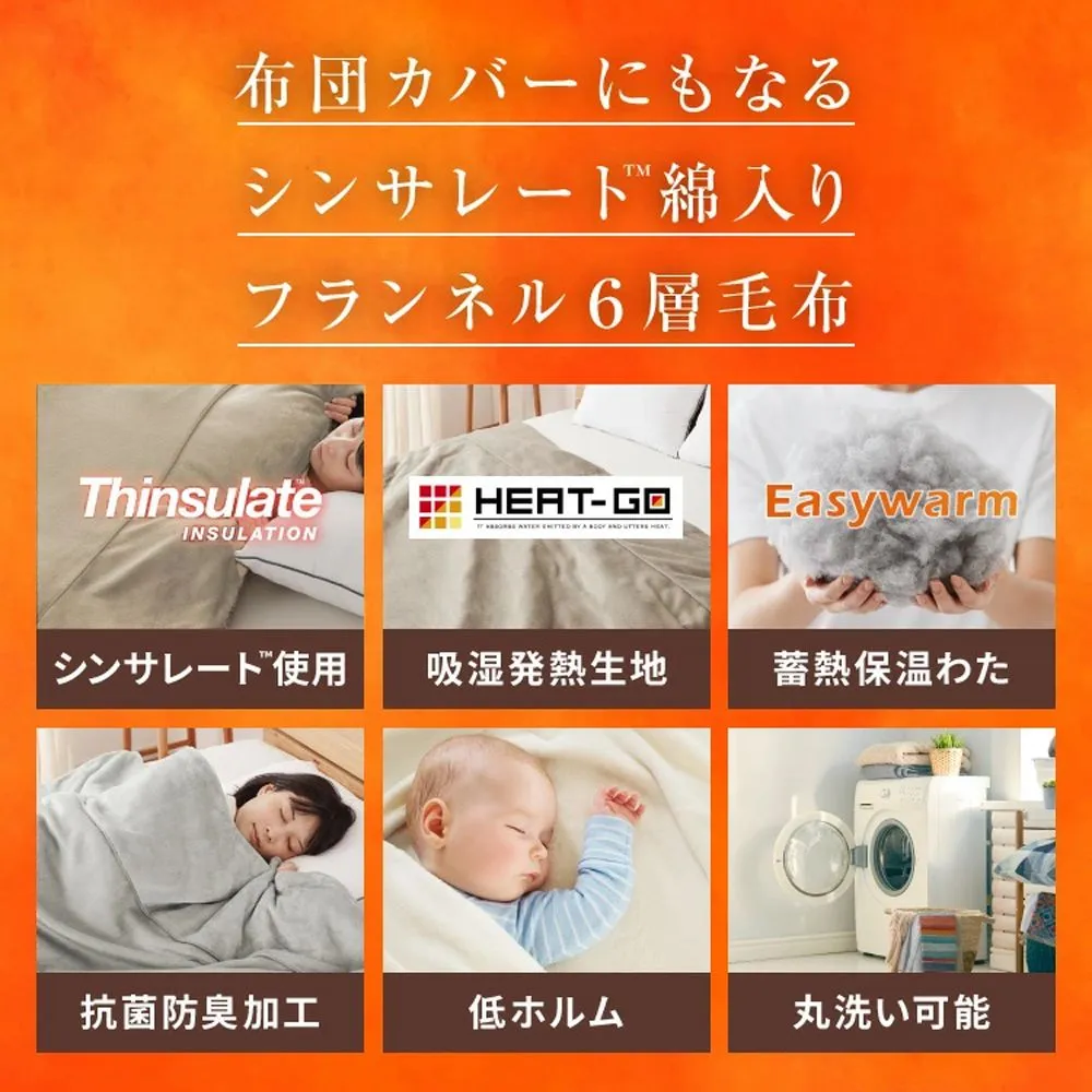【送料無料】シングル 2way 6層構造 フランネル 毛布 掛けふとんカバー シンサレートTM 吸湿発熱生地 HEAT-GO 蓄熱保温わた 抗菌防臭加工 低ホルム 丸洗い可能 グレージュ グレー ウォッシャブル 洗濯可能 新生活 ギフト プレゼント