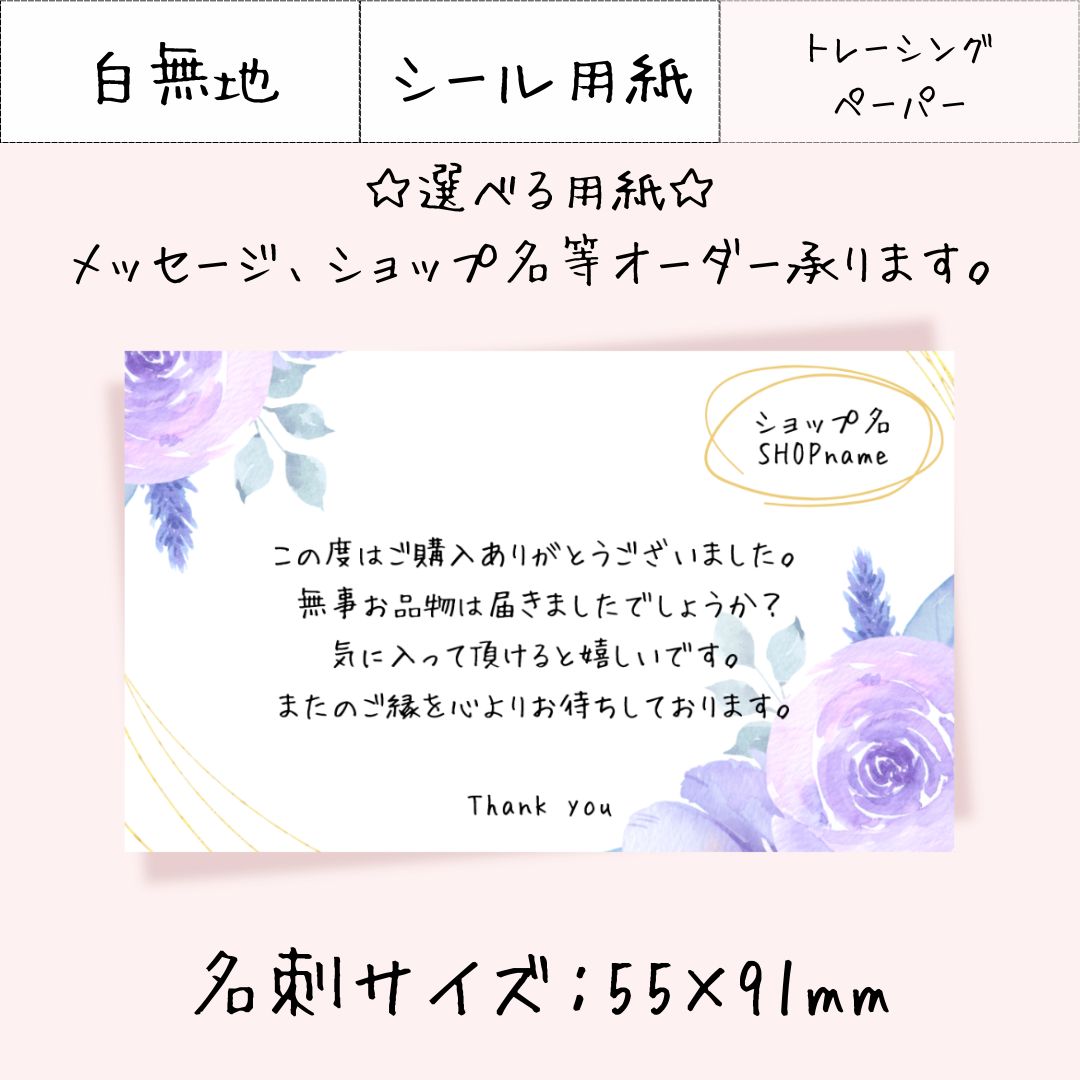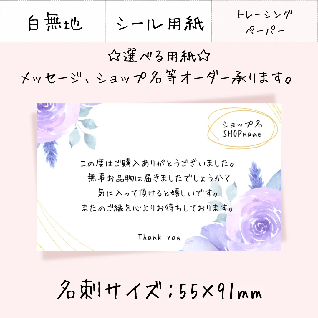 JP007-2【30枚~】選べる用紙 名刺サイズ サンキューカード メッセージカード アクセサリー台紙
