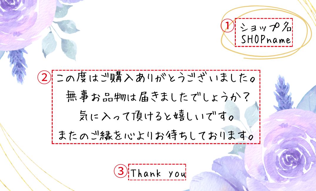 【メッセージ等のオーダー】 画像3枚目をご参考にしてください。 ①ショップ名 ②メインメッセージ ③サブメッセージ ①と③の配置交換可能です。 メッセージやショップ名なしの作成も可能です。 ☆オーダーいただいたデザインは1年間保存しております。 1年以内にリピートいただいた場合お値引きさせていただきます。