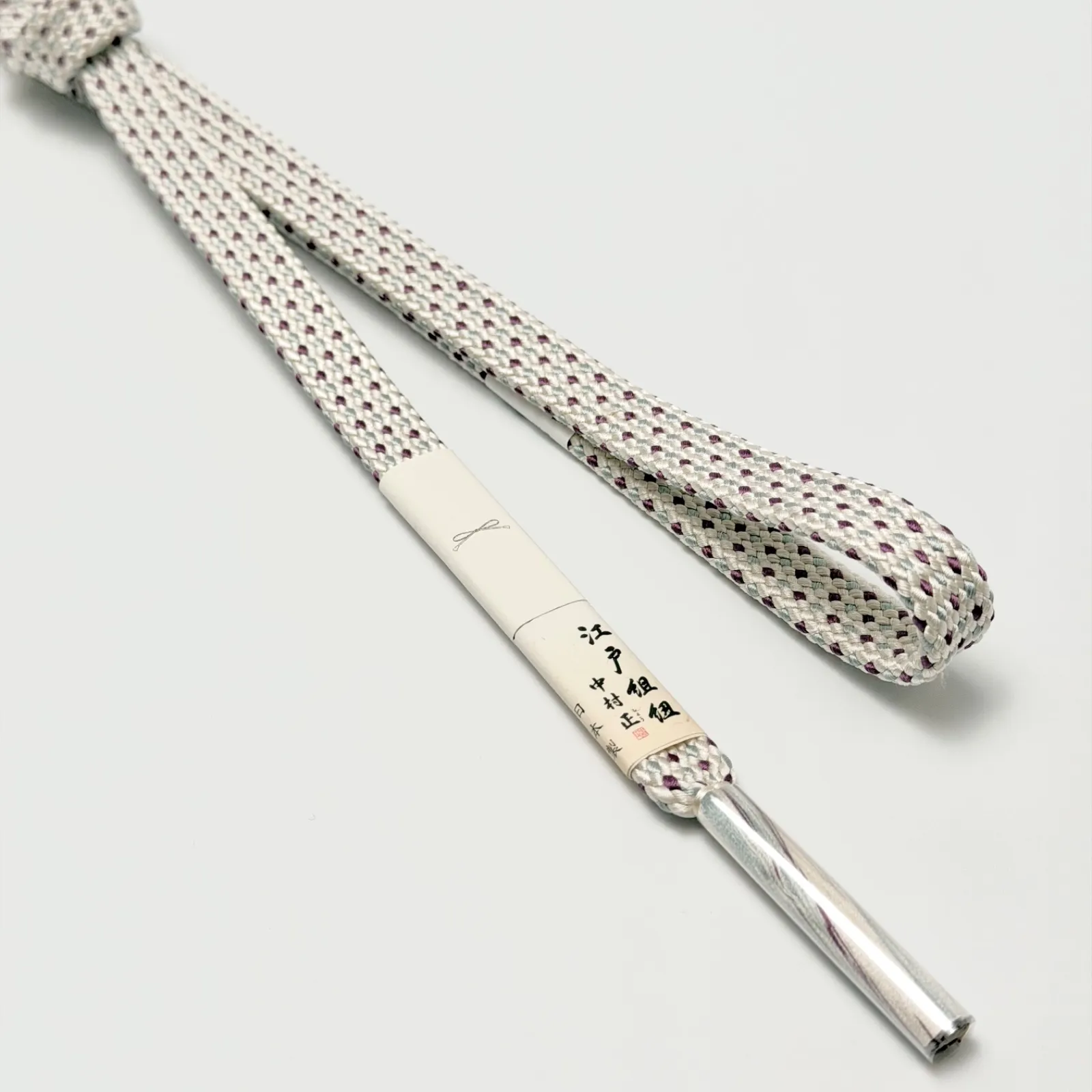 「江戸組紐」制作 中村正の(内記組吾妻二色ドット32玉)帯〆のご紹介です。