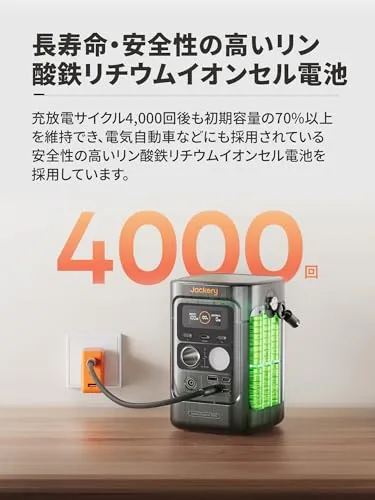 【長寿命・安全性の高いリン酸鉄リチウムイオンセル電池】充放電サイクル4,000回後も初期容量の70%以上を維持でき、電気自動車などにも採用されている安全性の高いリン酸鉄リチウムイオンセル電池を採用しています。電池を買い替えの不安が少なく、長期的にはコスパも抜群です。