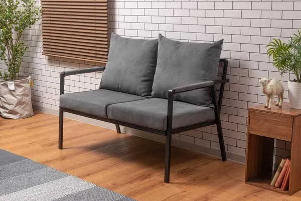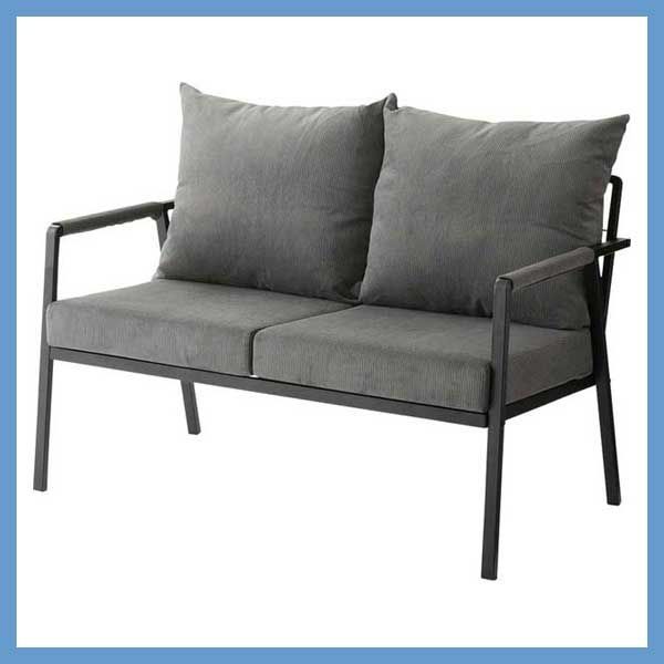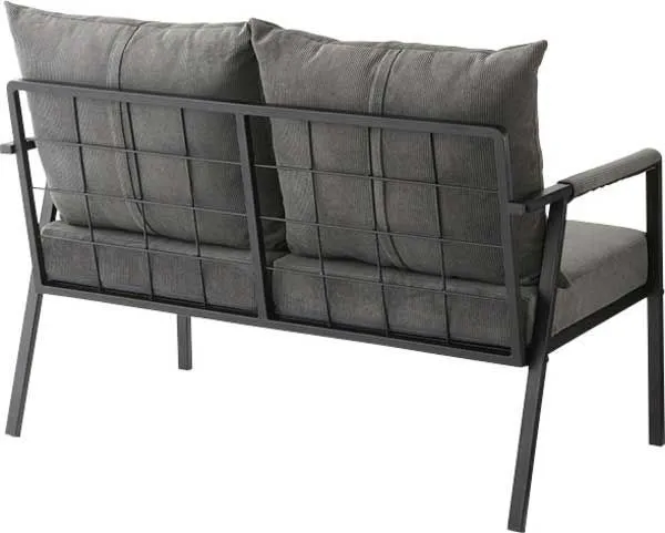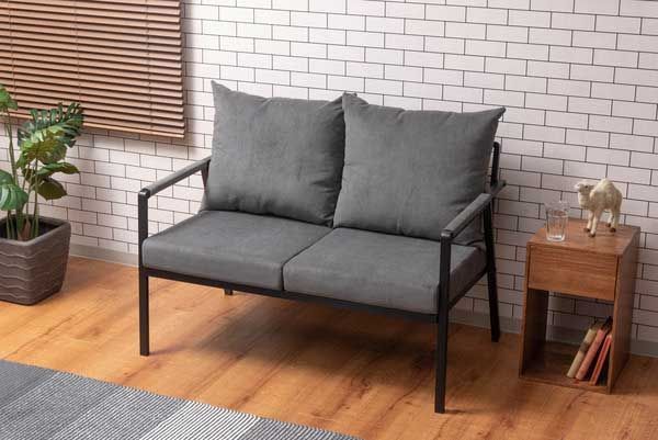 コーデュロイとスチールの2人掛けソファ(肘掛けあり)「W115.5×D71×H88×SH44.5cm」(座面・背もたれ/取り外し可能)No.462/グレー