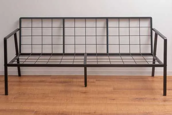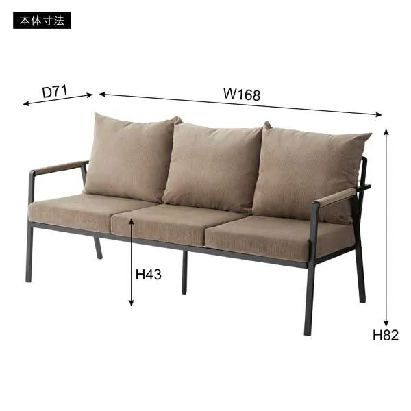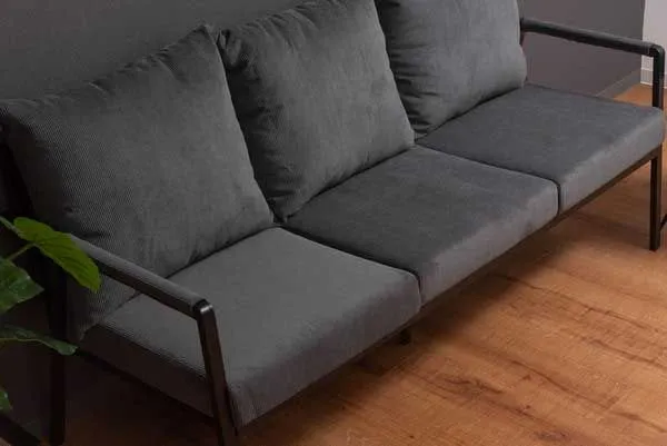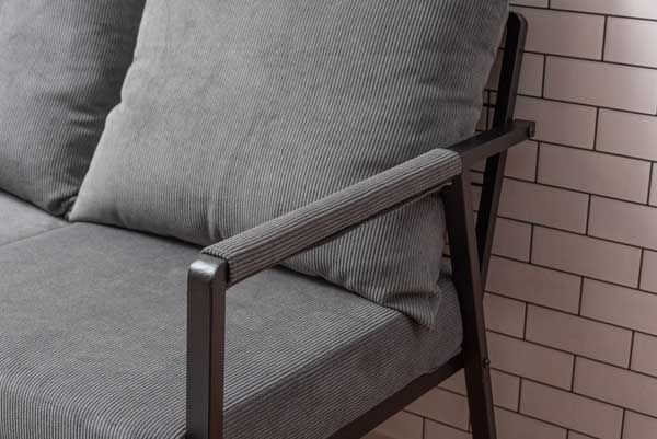 コーデュロイとスチールの3人掛けソファ(肘掛けあり)「W170.5×D71×H88×SH44.5cm」(座面・背もたれ/取り外し可能)No.463/グレー